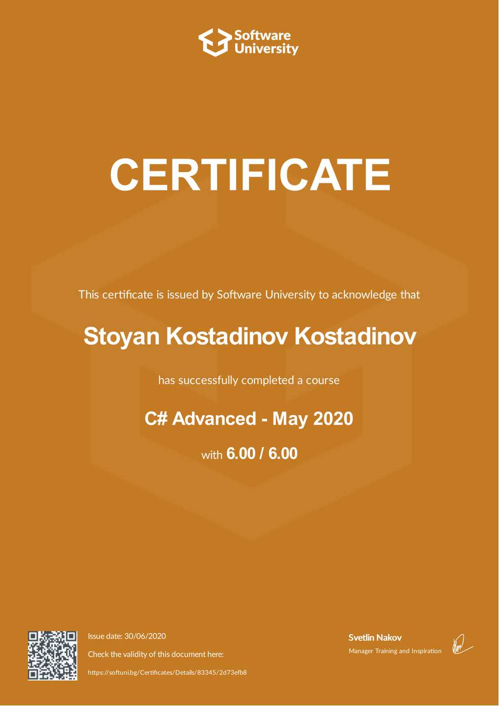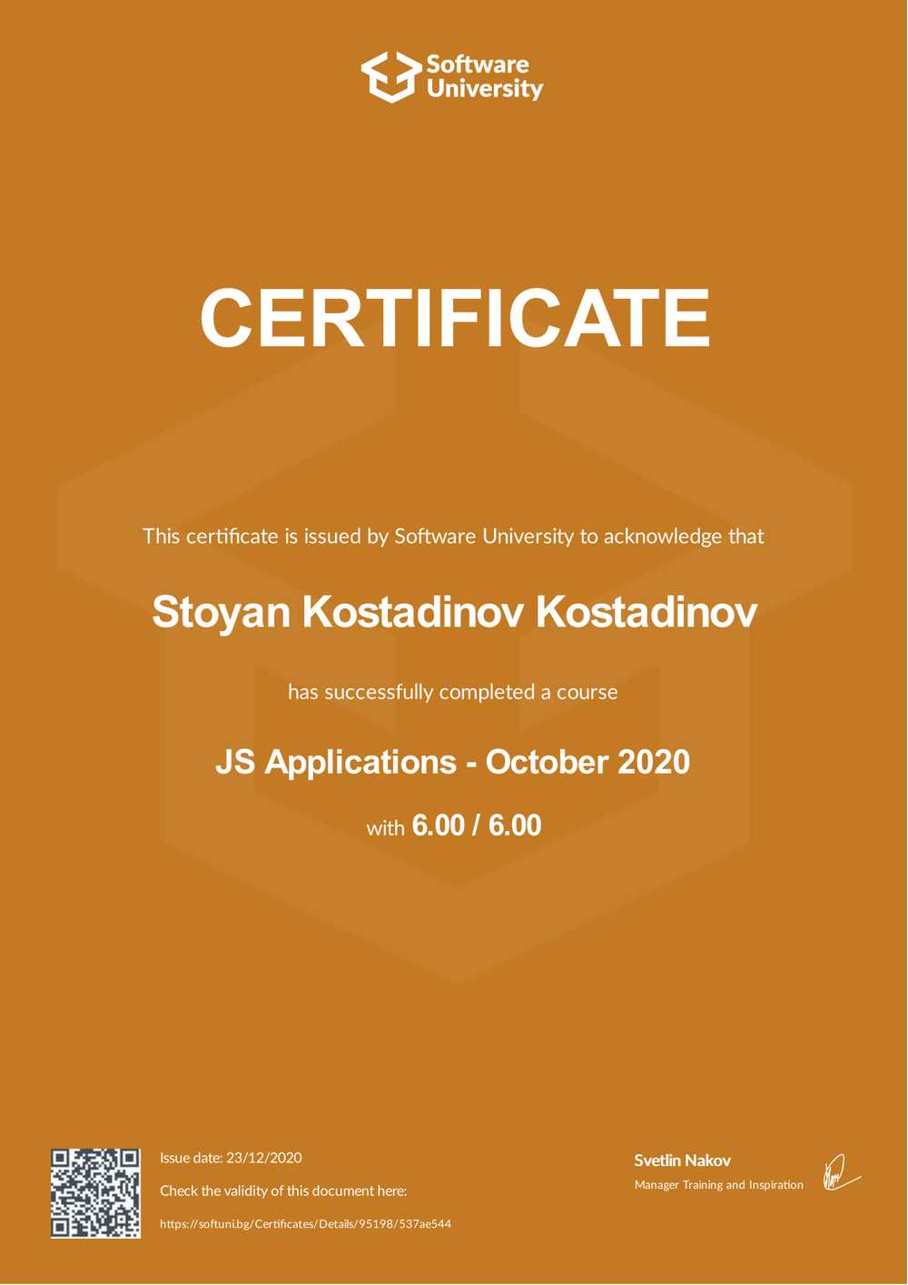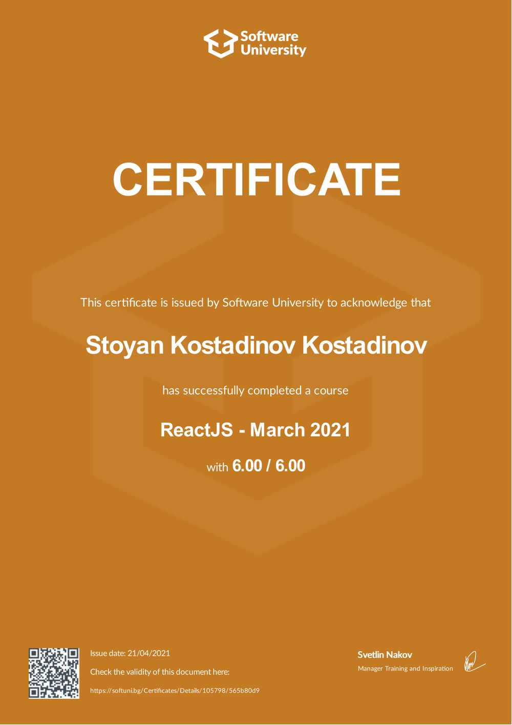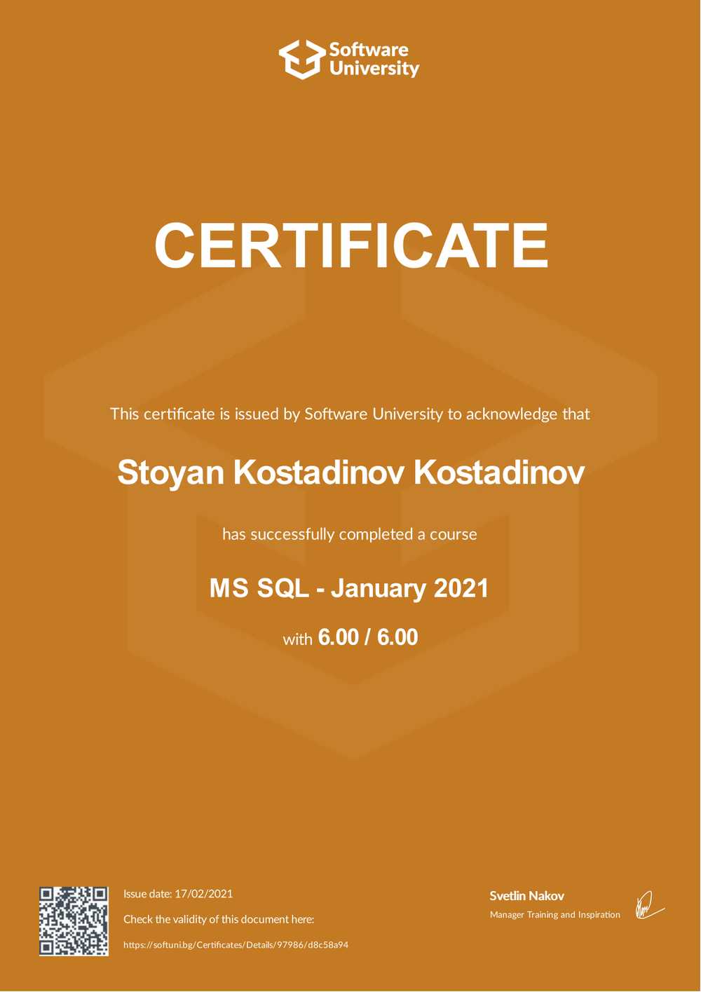 My name is Stoyan Kostadinov aka (Tonsan1) and I've recently completed the C# Full-Stack Web Development courses at Software University. I'm highly motivated and detail oriented with a constant desire to learn about new technologies and ways to write clean code.